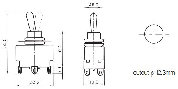 | 토글스위치-2위치형, 단투(2단자) 및 쌍투(3단자) Toggle Switches-Single&double throw switches with two positions |