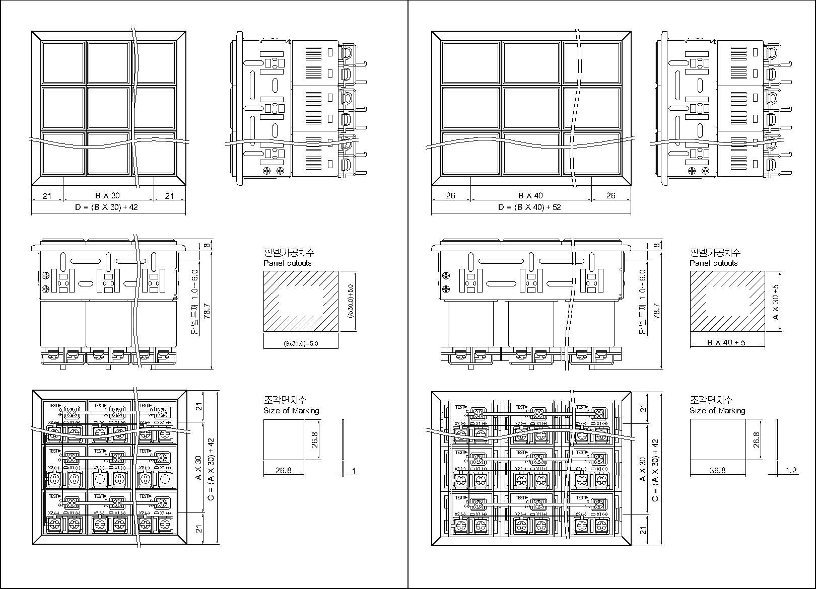 | ∙ 판넬부착시 집합표시등 본체의 중량, 배선에 의한 전선의 중량등을 고려하여 판넬두께를 결정하십시요. | ||||||||||||||||||||||||||||||||||||||||||||||||||||||||||||||||||||||||||||||||||||||||||||||||