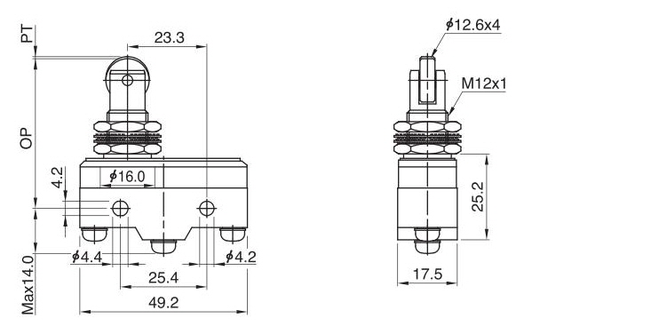 | Z형 마이크로스위치-로라눌름버튼형 Z type micro switches, With push button |